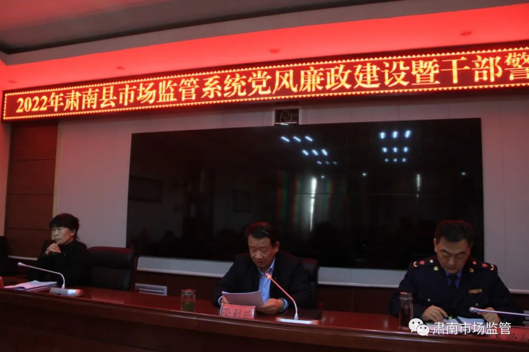 2月25日,肃南县市场监管局召开党风廉政建设工作暨干部警示教育大会。各所、执法队、中心和局机关全体干部职工参加会议。