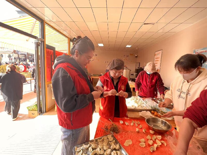 活动当天,交易中心的志愿者们早早来到活动现场,与社区工作人员一同忙碌起来。大家分工明确、默契配合,揉面、擀皮、调馅、包饺子,现场一派热火朝天又温馨和谐的景象。志愿者们手上不停,口中也不忘与围坐一旁的老人们拉家常、话家常,询问他们的身体状况和生活需求,倾听老一辈的人生故事。欢声笑语中,一个个形态饱满、饱含心意的饺子逐渐堆满了托盘,小小的活动室内弥漫着饺子的鲜香与浓浓的温情。