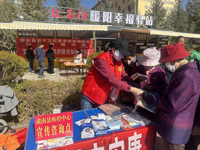 在重阳佳节来临之际,为大力弘扬中华民族尊老、敬老、爱老、助老的传统美德,同时聚焦老年人这一结核病易感重点人群,切实提升他们的健康防护意识和自我防护能力,县疾控中心组织志愿者服务队,在民族公园红石榴暖阳幸福驿站开展了以“重阳敬老 防痨健康”为主题的结核病防治知识传播活动。