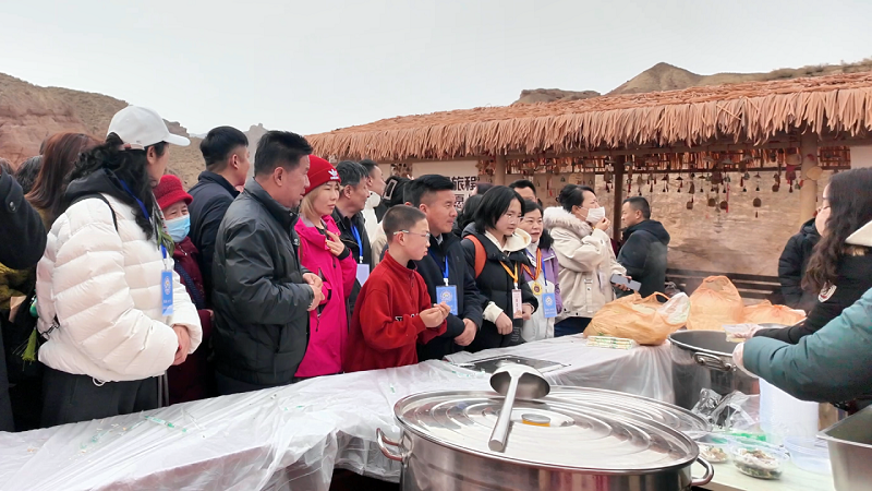 春日的冰沟丹霞暖意涌动,甘青两地数百名导游、司机齐聚于此,共赴这场属于文旅一线从业者的盛宴。景区为司导们不仅开放免费入园通道,更精心筹备草芽鸡汤品鉴会,让大家在春日里沉浸式感受地方特色美食的醇厚风味。品鉴现场,鲜香的鸡汤暖胃又暖心,司导们围坐畅谈,一边品味美食,一边交流带团经验,分享甘青环线的旅途趣事,欢声笑语间,尽显行业同心的融洽氛围。