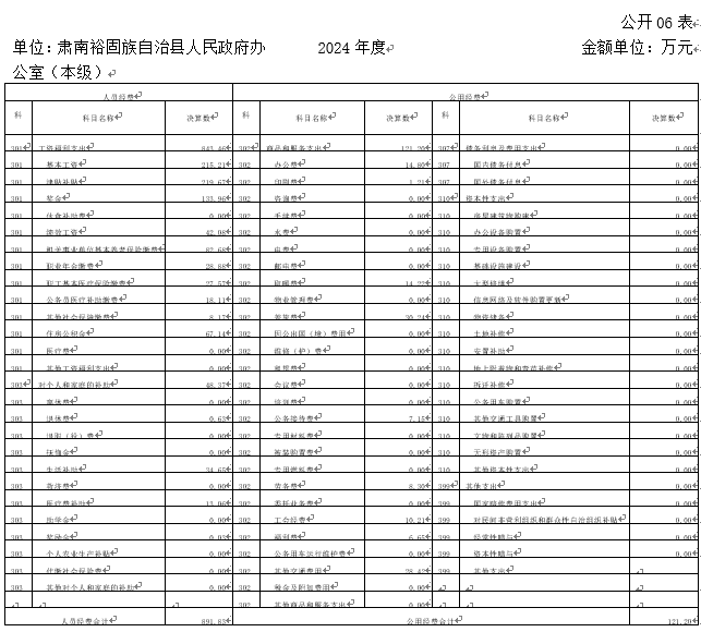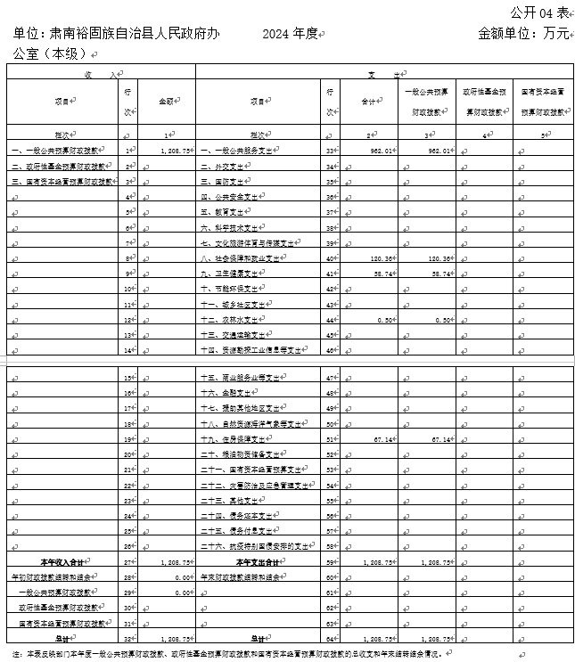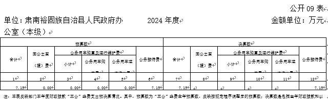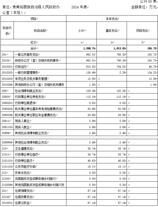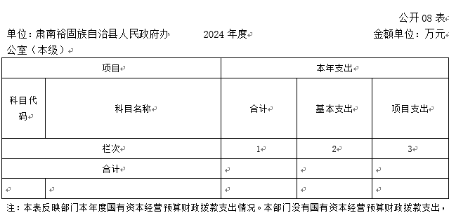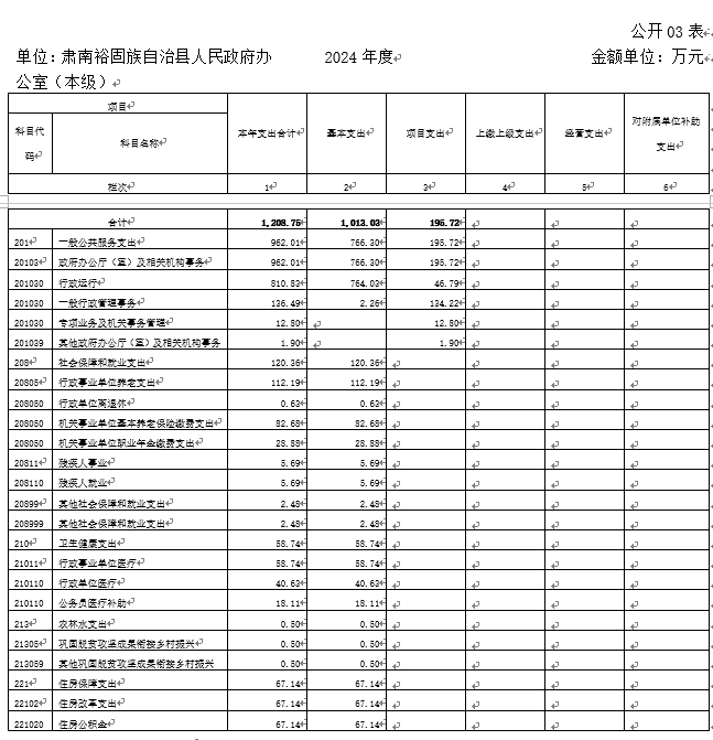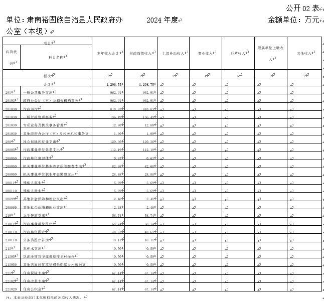 单位:肃南裕固族自治县人民政府办公室(本级) | 2024年度 | 金额单位:万元 |